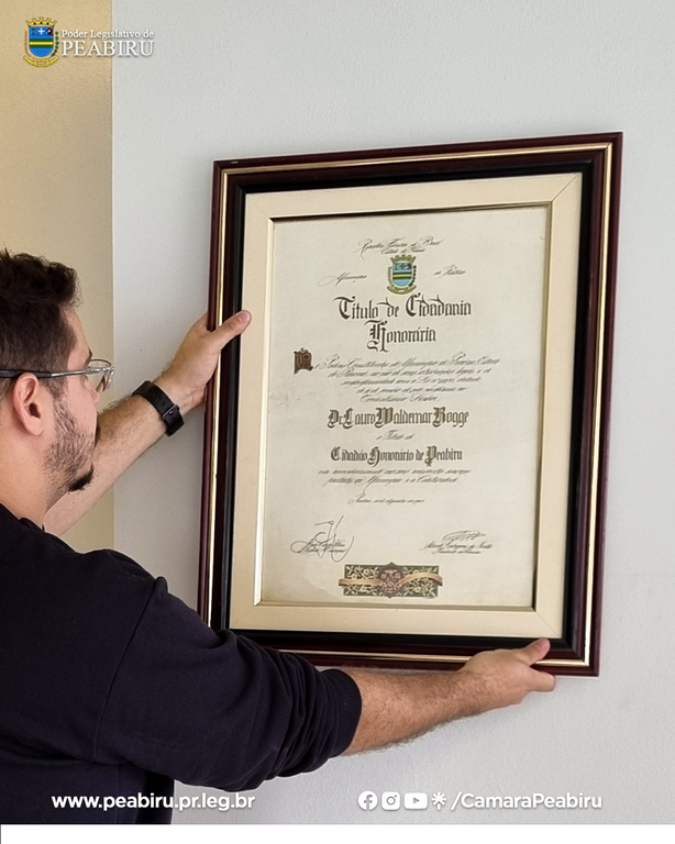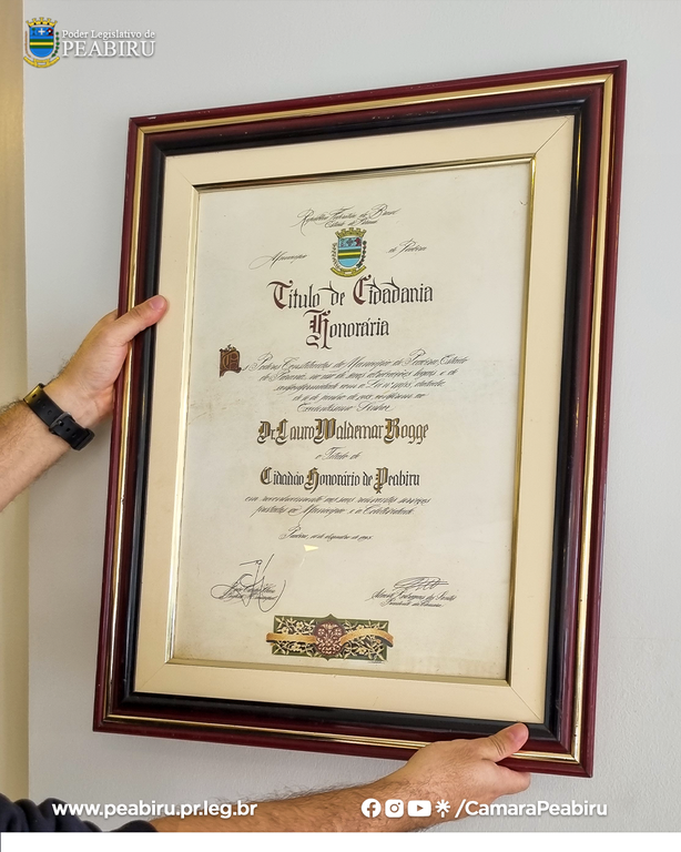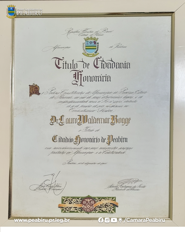 Doação da Placa de Cidadania Honorária do Sr. Lauro Waldemar Rogge — CÂMARA MUNICIPAL DE PEABIRU